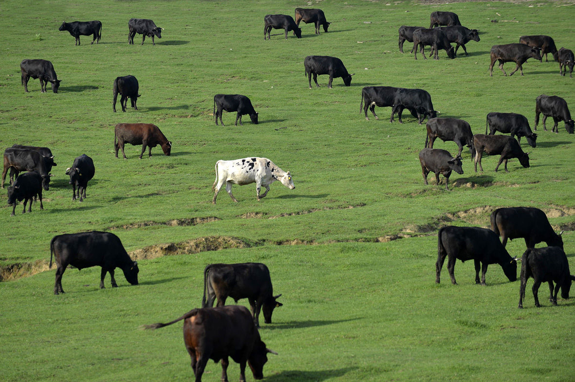 60頭ほどのホルスタインオス牛とともに