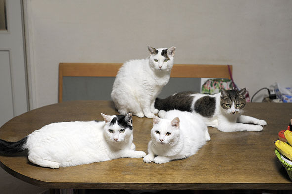 仲間の猫たちと団体生活を謳歌しています