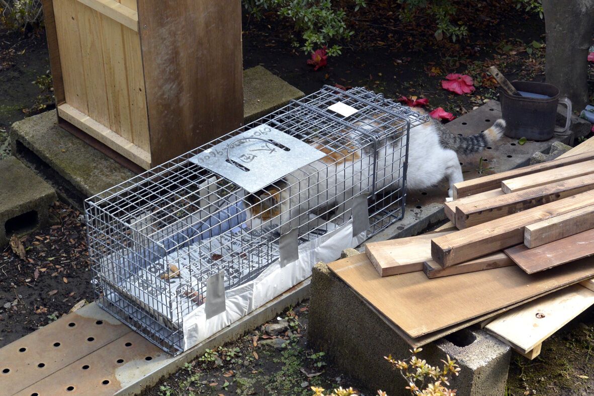 マーラ2 2020年08月17日 ほ 捕獲器の用意だー! ... 続きを読む ほ 捕獲器の用意だー! 昨日の続きですとりあえず満足そうな三毛猫ちゃん捕獲器の用意はできたけれどお腹が膨れちゃったんじゃないかな大丈夫かなほれほれまだおいしいお魚があるよーん食べて食べてーいい感じよーん来た来たーよっしゃー!あと一歩だ!ありゃ 出ちゃったそんなー勘弁してくださいよー? どしたの頼むよ素直に入って頂戴ようーんー まだあるなーもうちょっと たべようかなそうそう!最後まで食べなきゃね!やったー! 捕まえた!こうして三毛猫は 捕まり病院に行くことになりましたつかまっちゃった・・・