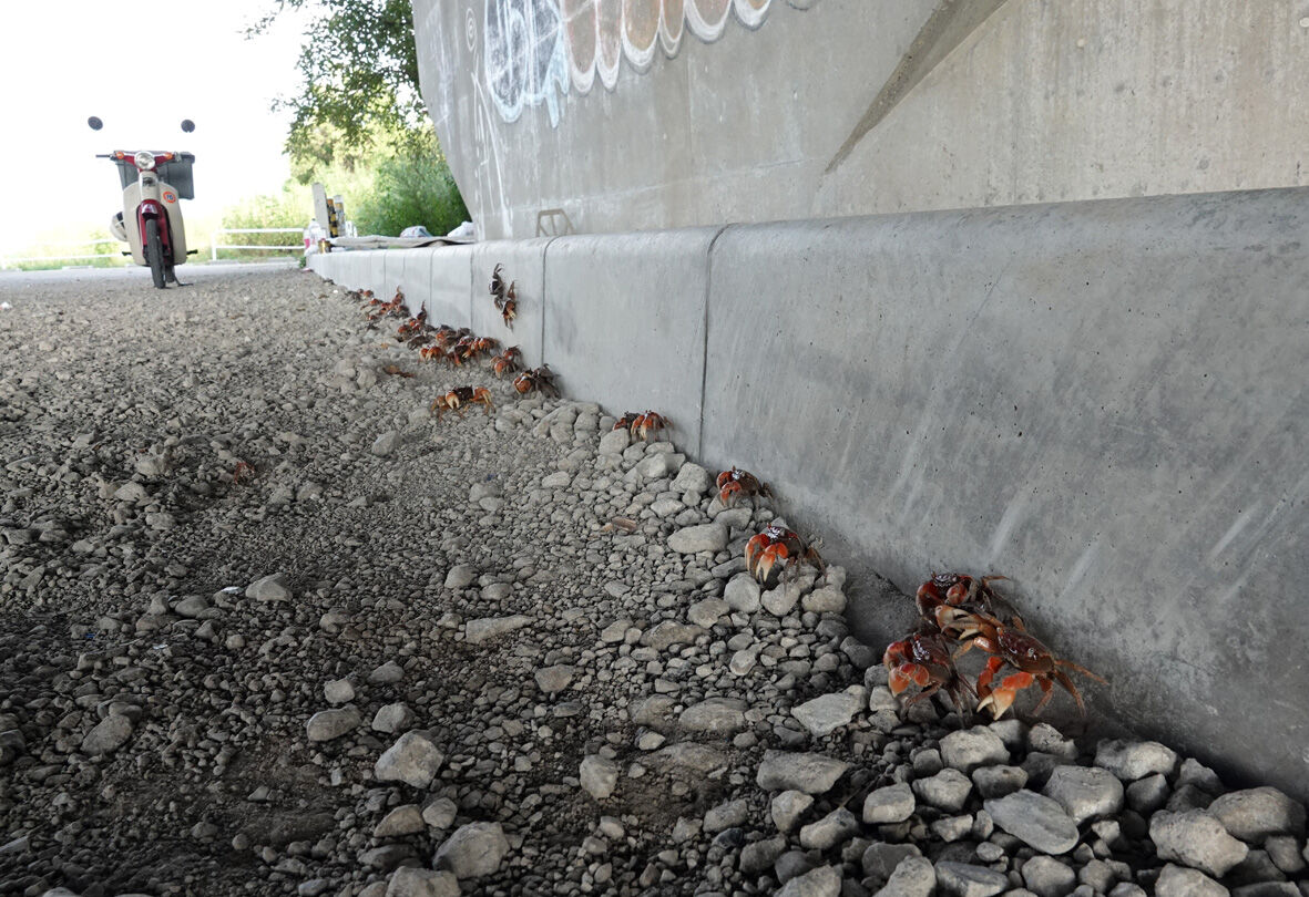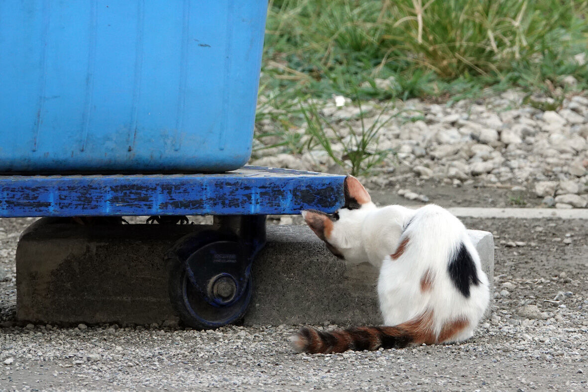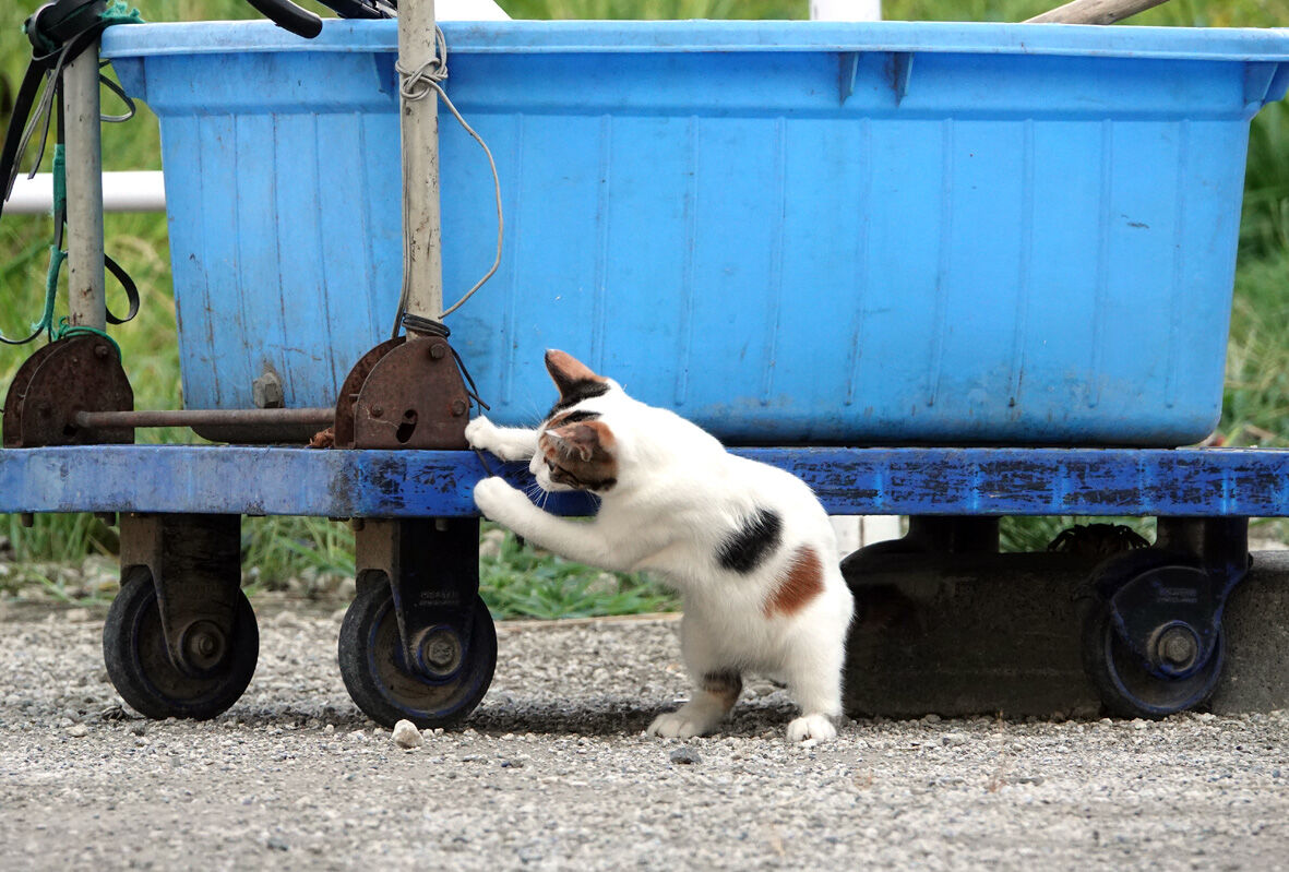 多摩川16 「おちゃめな三毛子猫 A」 2020年08月27日 5日前の8月23日の多摩川です ... 続きを読む 5日前の8月23日の多摩川です 結構 激しい雨が降ったりした翌日いつもは夕方に出てくるカニたちどうしたのか明るいうちからぞろぞろ出てきていました雨が降った影響でもあるのでしょうかあ薄茶トラのオスと三毛子猫発見はっ私に気づいたでもこの子は人馴れしている子だから逃げたりはしません気になるのは台車の下にいるカニたちカニがうまい具合に逃げるものだから捕まえることが出来ませんうーん つかまらなーい下にもぐったり外から攻めたりしばらくやっていましたがカニは少しの移動で攻撃をかわしますきーっかんしゃくを起こして紐に当たり散らす三毛子猫(笑)あ みてた?トットットッふーんカニなんて きょうみなかったもんねーとばかりに こちらの方に移動(・・・つぎは ぜったいにつかまえる)雨上がりのひと時河川敷では平和な時間が流れていましたん?平和な時間は薄茶トラのおじさんにもね(笑)これから起きることも何も知らずに今は平和に生きているかれらを待つのは9月10月の台風シーズンそして11月にはこの辺り一帯に工事が始まりますどうか皆さま何の罪もないかれらに手を差し伸べていただければと思いますあたちほかのホームレスさんにつれていかれたのでも がんばってかえってきたよ