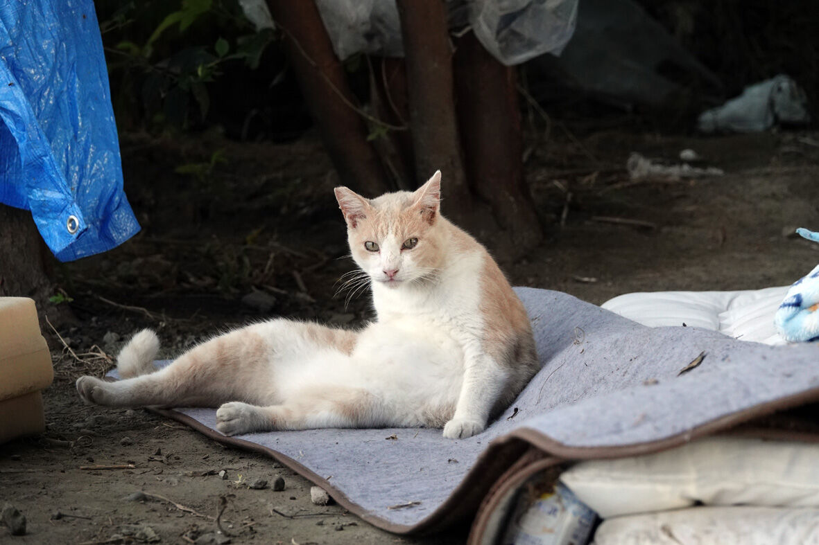 多摩川15 「青い目の河原猫ミスカ」 2020年08月23日 河川敷の工事が始まると 住む場所が無くなってしまう猫たち そんな猫たちを紹介しています ... 続きを読む 河川敷の工事が始まると 住む場所が無くなってしまう猫たち そんな猫たちを紹介しています 前に紹介した12匹の猫たちの他にもまだ確認撮影が出来ていない子がいますそのうちの1匹新しい子を紹介します青い目のきれいな河原猫名前は「ミスカ」と名付けられていますおいでーホームレスさんたちに可愛がられている子青森出身の「青さん」が紹介してくださいましたミスカという名前は中米出身のホームレスさんから名付けられたといいます他に「バスケス」とかいるそうですよいったいここには何匹いるのやらわたしにもスリスリこの子もせっかく人馴れしているのだからどこかのおうちに行くことが出来ればいいのにプリっとした かわいいお尻短い尻尾うっすーい三毛になるのかなもちろん女の子涙ぼくろがあってちょと色っぽい感じ(笑)果たして手放してくれるか交渉してみようと思います「おじさんと河原猫」9月13日発売