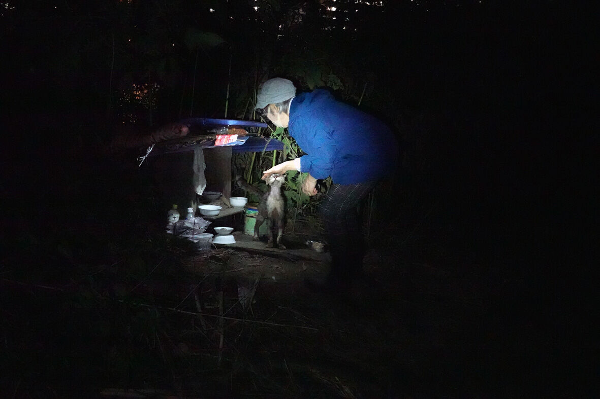 今度は餌をやる村井さんの