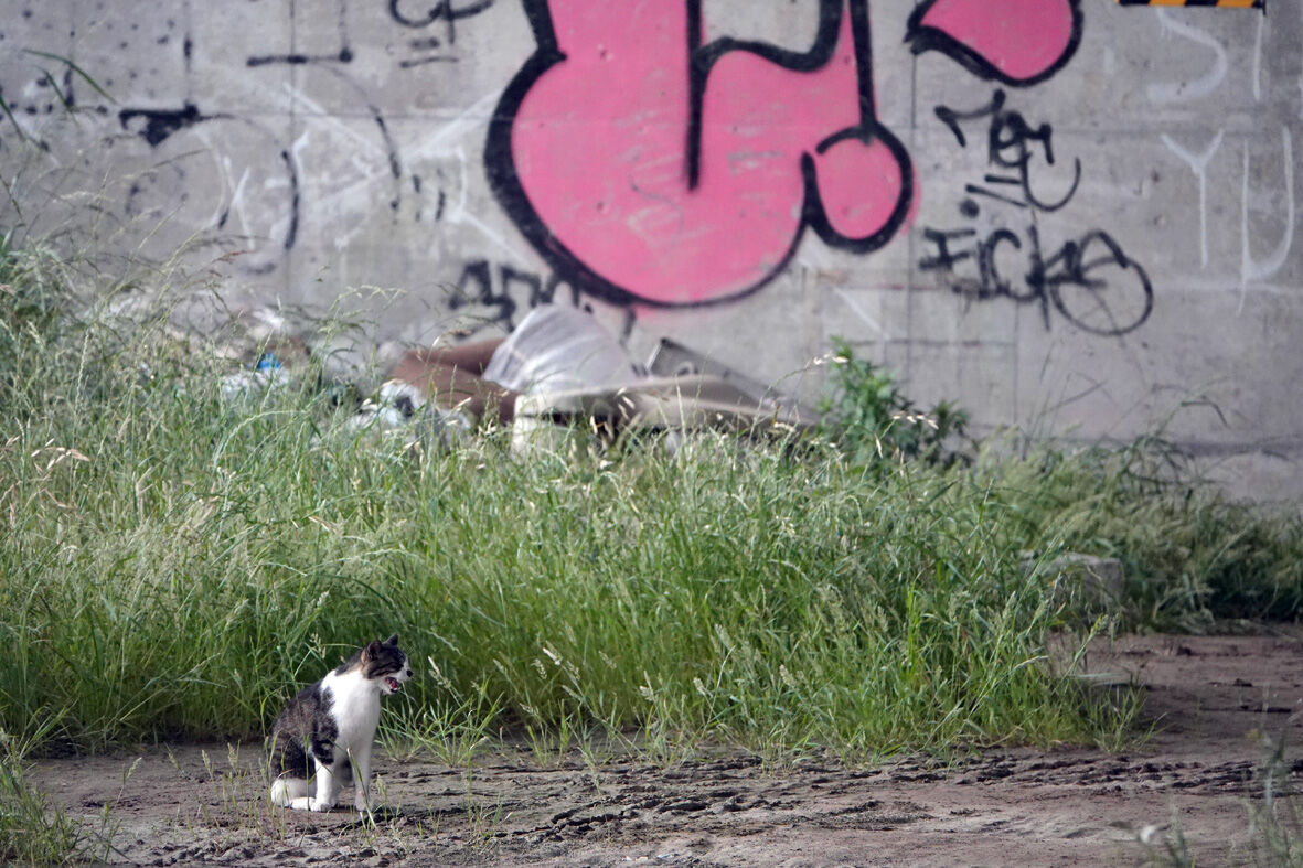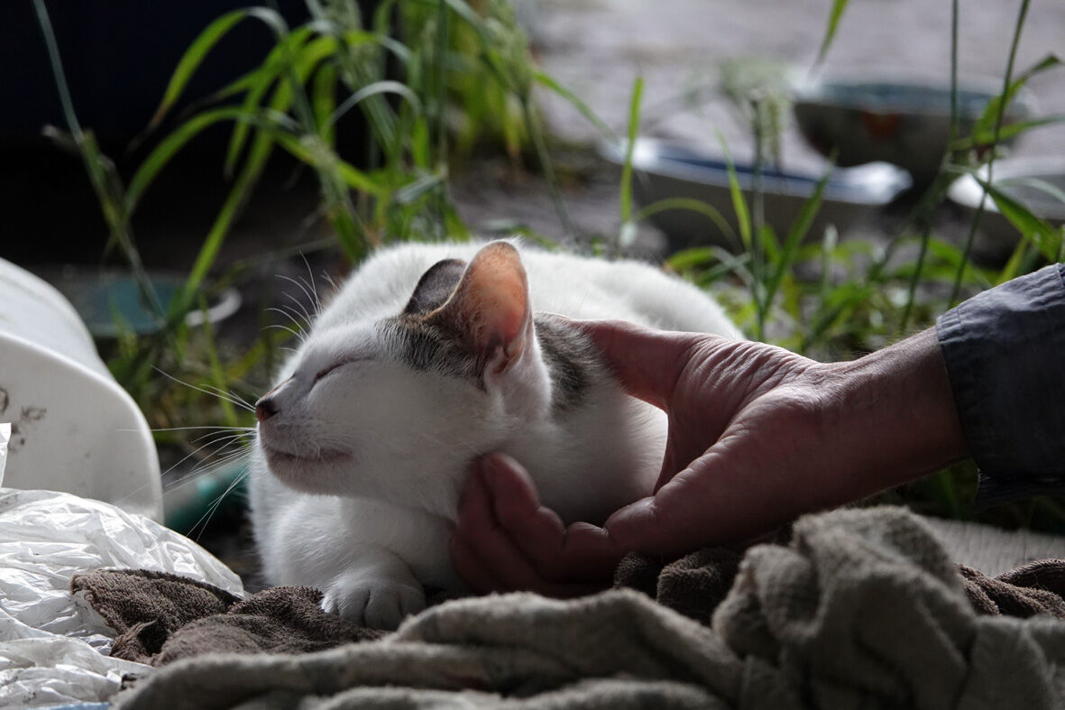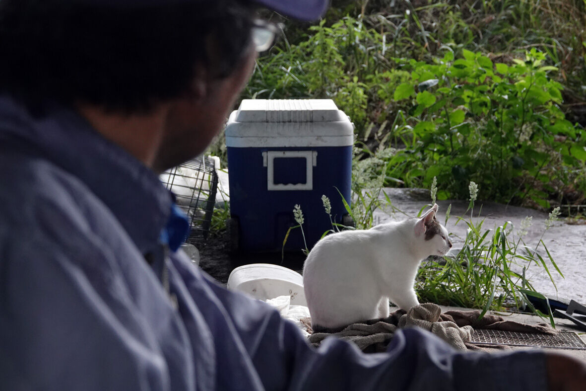 おじさんと河原猫