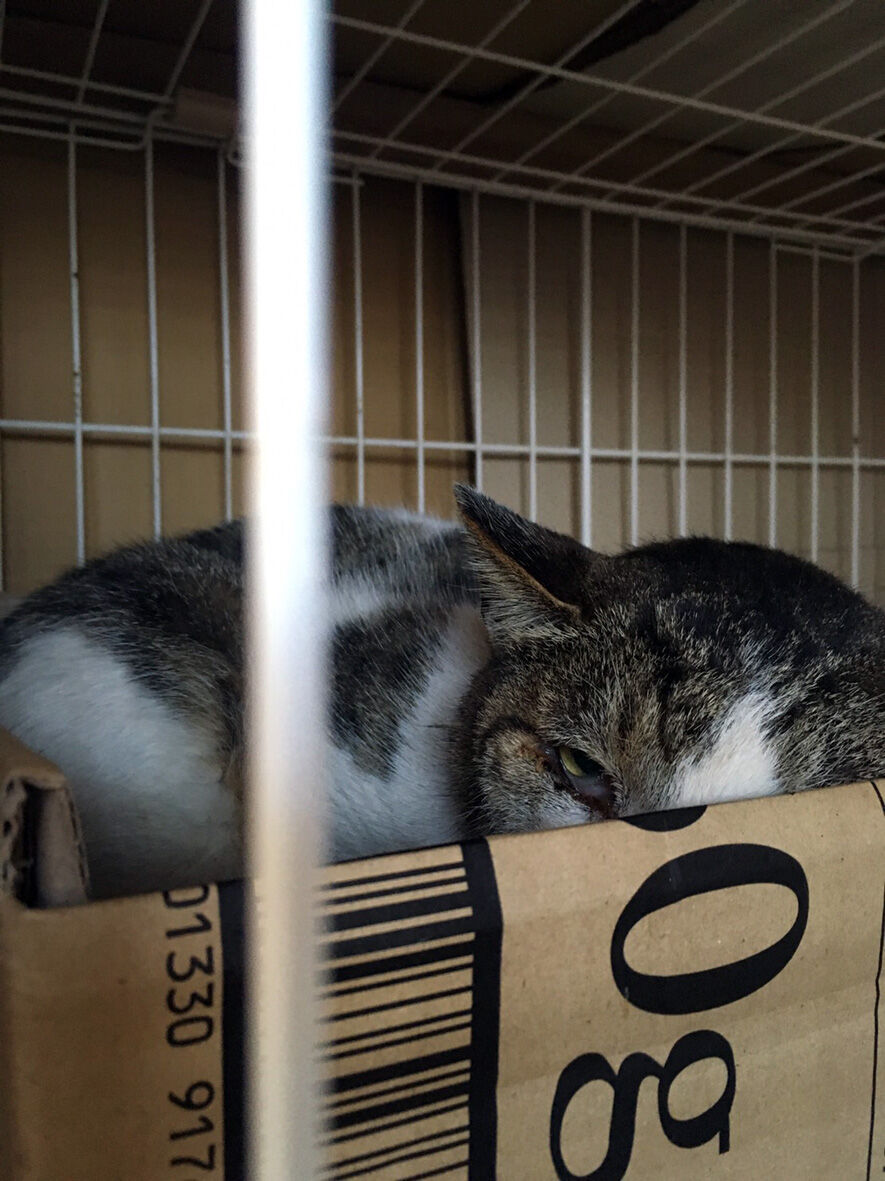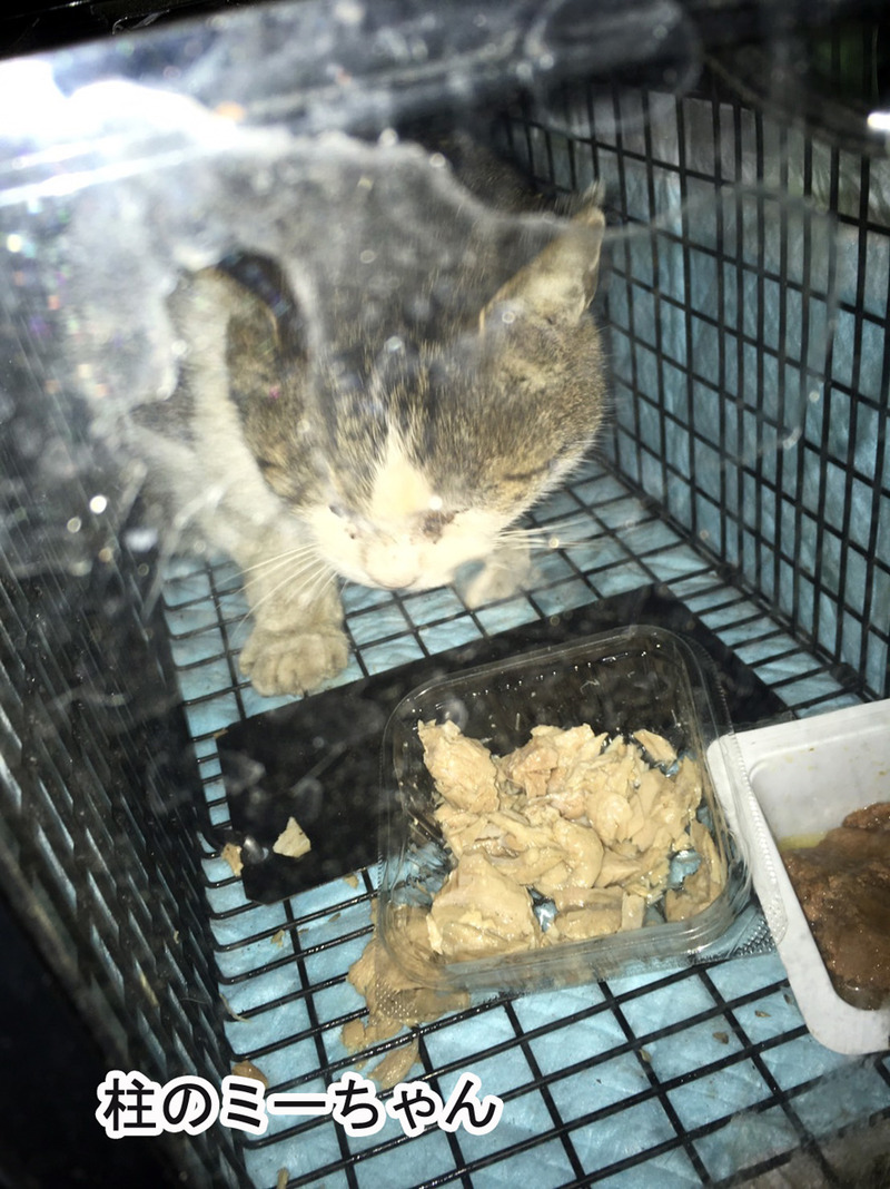 2匹の河原猫 救出作戦 2022年11月15日 昨夜から早朝にかけて ... 続きを読む 昨夜から早朝にかけて 柱のミーちゃん三毛ちゃん2匹の救出作戦が行われました参加していただいたのは福島で給餌活動をしておられたかじさん もいさんのお知り合いである小林さんという男性小林さんはお住まいの地域で猫の保護活動を長年しておられ猫のためならと手を挙げてくださったのです男性で猫の保護活動に慣れておられる方深夜で治安の悪い河川敷での活動という悪条件である現場にはうってつけの方でしたまずは給餌しておられる村井さんとホームレスの船越さんと一緒に現場に入り捕獲器を仕掛ける場所を決めてセットほどなく柱のミーちゃんが現れたそうですミーちゃんは村井さんには懐いておりごはんを待っていたのでしょう柱のミーちゃん捕獲成功!なんとなんと3人がいる目の前で柱のミーちゃんは捕獲器に入ってくれましたこれは幸先が良いこの調子で三毛ちゃんもと待ちますが1時間ほど経っても三毛ちゃんは一向に現れません餌を与えている船越さんもここ数日は見かけていないといいます小林さんは高齢者の給餌するお二人を心配し先に引き上げてもらいあとは自分ひとりでやってみますと引き継がれたのです木々は伐採され小屋なども殆どなくなっている荒野のような場所です小林さんは捕獲器に入ったみーちゃんを一度車の中に置きに行くことにしました捕獲器は4台フル稼働です小林さんの本気が伺えます現場に雨が降ってきました捕獲器は雨の当たらないところにセットし約400m離れたところに駐車してある車の中で待つことにします捕獲をセットして4時間が経ちましたそろそろ動きがあるのではと小林さんが様子を見に行ってみたら入っていた!白猫が・・・なんと 見たこともない猫がいたのですあいたたたたただでさえ ミーちゃん 三毛ちゃん2匹を保護出来るところがないというのにさらにもう一匹とは!これはどうする私も誰も保護出来ない以上小林さんに保護してくださいとは言えないLINEで口ごもっていたら保護します と小林さんは言い切りました耳カットもされていないつまり未手術の猫をこのままリリースするわけにはいかないそしてたとえ不妊手術したとしてもここに戻すわけにはいかないでしょう と言ってくださったのですしかしその保護も一時的なものすでに10匹以上を家で保護している小林さんにこれ以上の負担はかけられないなんとか別で保護してくださる方を見つけるしかない白猫が捕まったのが23時過ぎそれから1~2時間おきにチェックして降り続いている雨の中朝5時まで粘っていただきましたが三毛は入っていませんでしたので今回はこれで終了していただきました残念でしたが それでも2匹の猫が救えましたあとは三毛だけ小林さんはまた行くと仰ってくださっています私が何もできない以上小林さんを頼るしかありません引き続き よろしくお願いいたしますその後の写真が届きました柱のミーちゃん隠れています白猫は堂々としていますね馴れてくれ易そうです保護してくださる方 募集です!(東京方面)以上撮影は小林さんでしたあとは三毛のみ!
