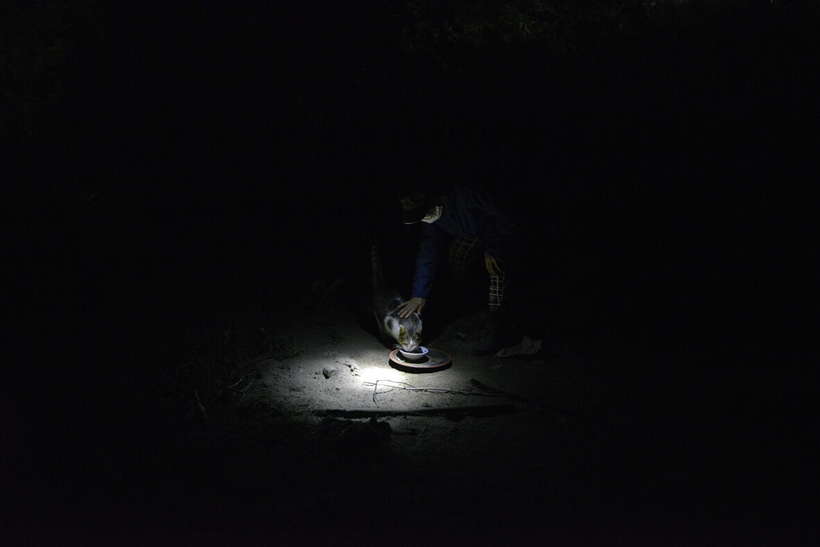 河原 2025年02月16日 週末のイベントで使うために 河原猫たちの写真を探していてああこんな写真もあったなとそんな写真を見てくださいこの子は救え ... 続きを読む 週末のイベントで使うために 河原猫たちの写真を探していてああこんな写真もあったなとそんな写真を見てくださいこの子は救えませんでしたその後 行方不明にでもホームレスの田中さんや毎日 給餌してくださる村井さんたちこの人たちのおかげで猫たちは生き永らえていましたすっかり暗くなっても次の餌場に向けて移動する村井さんあおさん後ろの家は田中さんのために建ててあげました鳥(笑)なんて鳥か知りません多摩川下流羽田空港はすぐそばです