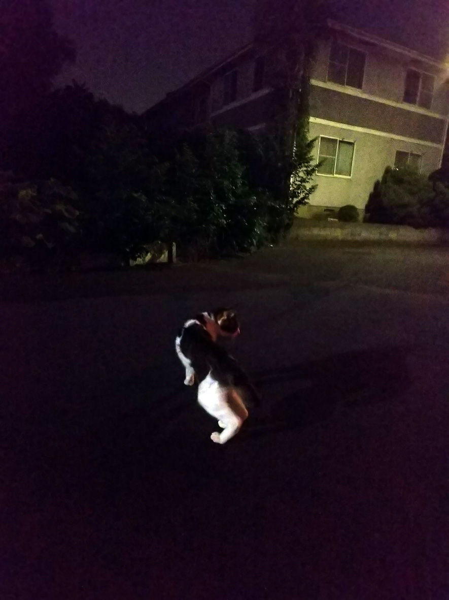 最期の散歩 2019年08月13日 とらまるは外の世界を見るのが好きでした ... 続きを読む とらまるは外の世界を見るのが好きでした まったく褒められたもんじゃないのですが私はとらまるを抱っこしてうちのまわりを散歩していたんです乳飲み子のころから飼っていたものですから抱っこの場合でのみ外(うちの敷地外)に出られるとそういうことにしましたとらまるたちもそういうものだと思っていて特に道路に降りたいというそぶりは見せなかったのでしたそれでも外は何があるか分かりません何かにびっくりしてパニックになることだって十分に考えられますのでやっぱり外に出すのはお勧めできないです自分がやっておきながらですが・・・幸いとらまるは大したこともなく17年間やってこれましたそして8月1日とらの最期の散歩ですピンボケで申し訳ありません夜で自撮りはキツイさらに元気なころなら絶対できない地面に降ろして自分の足で歩かせてみましたとらが一生を生きた土地を少しだけど知って欲しいと思いましたよろよろと歩き辺りを見回しながら不思議そうな表情をしていましたよとら とらお前はここで産まれ ここで死んだお前もこの町の住民だ町に住んでいるのは人間だけじゃない住民票なんかなくったって大蔵の住民の一員だったんだよ皆 しあわせに生きる権利があるんだと置き去りにされ見捨てられた福島の動物たちに会ってからそう思うようになっていますそしてその子たちを守るのはその地域の住民の役目なんだとんーいちどだけパニックになっておとうちゃんを ちまみれにしたようなそんなきがするようちのとらまるそうだったわ・・・頭を何度も叩かれ 胸も引っかかれ腕は3回も咬まれたっけとら7歳の頃でしたでもとらを離しませんでしたよ!