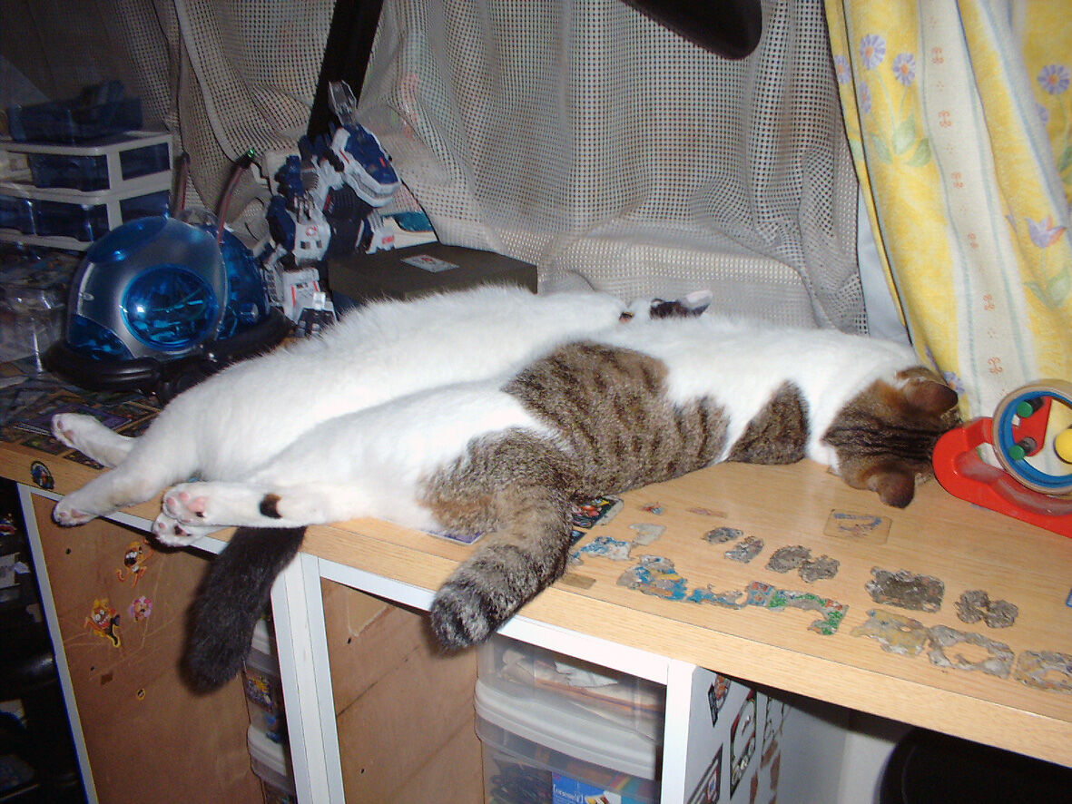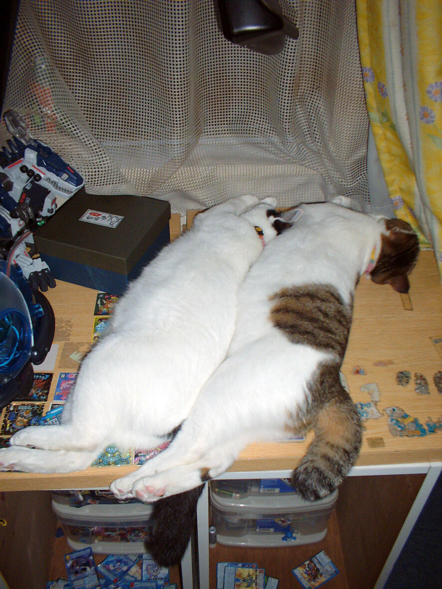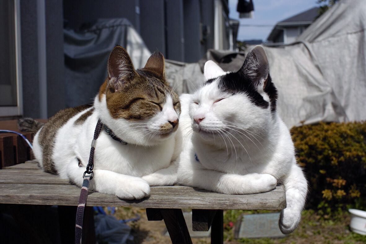永遠の うちのとらまる 57 「ぐでシンクロ」 2020年05月15日 本日は2020年5月15日 ... 続きを読む 本日は2020年5月15日 今回の写真は2004年6月とらまる2歳弱の頃に撮影したものです今となっては もうよく覚えていないのですがこの日も暑かったのかなぐだついた とらまるがベンチの上で寝ていましたこの写真を撮影してしばらく放っておくと面白いことにシンクロしていましたよ何も手を加えていないのに自然とこうなるのは本当に不思議とら と まる見かけも性格も明らかに違うのにふたりはどこかで繋がっていたのですねなんでかなーうちのとらまる