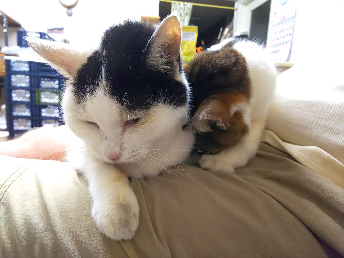 誕生日 2019年08月07日 今日は8月7日 花の日とらまる17回目の誕生日ですとらは2日前の5日に逝ってしまったので残念ながら ここに姿はありません代わりにレイを置いてみました食事がとれず とらもいなくなって元気のない まると生命溢れる子猫のレイいのちは循環していますねレイは まだ決ま ... 続きを読む 今日は8月7日 花の日とらまる17回目の誕生日ですとらは2日前の5日に逝ってしまったので残念ながら ここに姿はありません代わりにレイを置いてみました食事がとれず とらもいなくなって元気のない まると生命溢れる子猫のレイいのちは循環していますねレイは まだ決まっていないけれどきっと里親さまのところでかけがえのない存在になるのでしょうね本日 夕方火葬したとらを引き取ってきましたこんなことが便利でもしょうがないのですがペット霊園とうちは歩いて5分の距離福島の子も含めて何度もお世話になってますとらの写真載せなきゃ8月1日亡くなる4日前とらが珍しくまるに甘えていました何を想っていたかなまるちゃん もうつらいよとらちゃん あたしもふたりは私のひざの上でしばらく動きませんでしたので辛かったのかなと