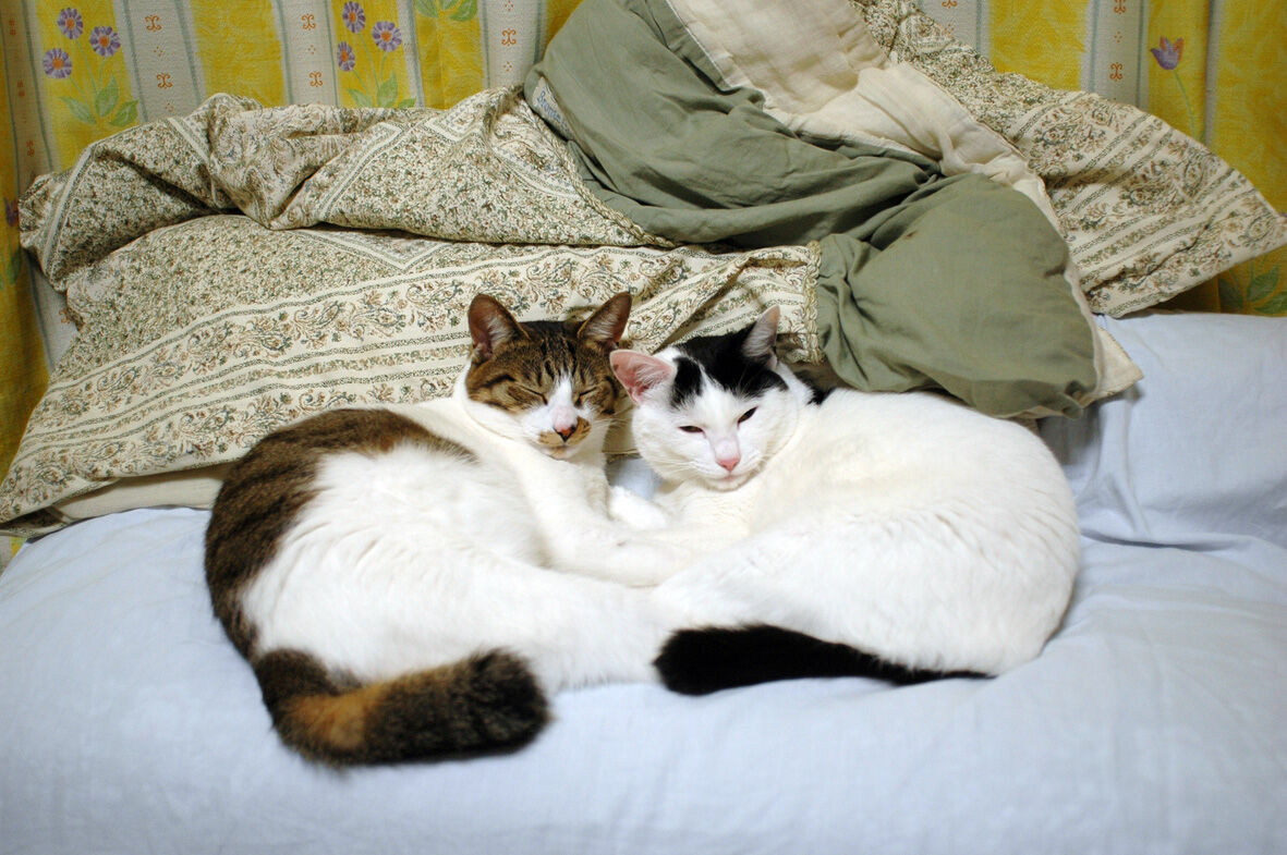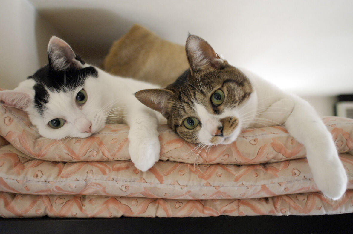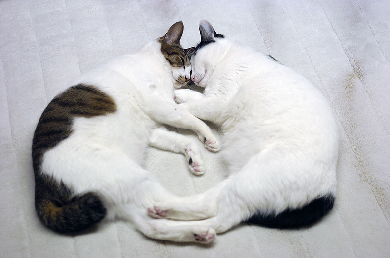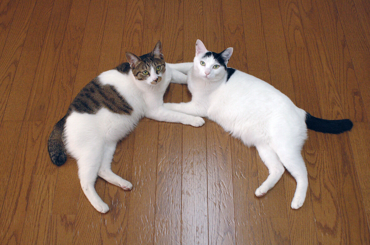 永遠の うちのとらまる 43 2020年04月08日 うちのとらまるたちは ... 続きを読む うちのとらまるたちは 容姿は それほど似ていませんが シンクロなどをすることによって似てると判断しているわけですこうやって くつろいでいるところでも身体の向き手の位置 足の位置シンクロしてますねやがて頼んでもいないのにぴったりとくっつき良く見てみると柄こそ違えど顔つきはそっくりですよねとくに目などはそっくりやっぱり姉妹なんだと思うわけですつかれちゃった何を一生懸命撮影しているのかとらまるには さっぱり分かりません私が やれシンクロだ やれ かわいいなどと騒いでいることもふたりにはどうでもいいことなのですシンクロ姉妹猫うちのとらまる 太田 康介辰巳出版