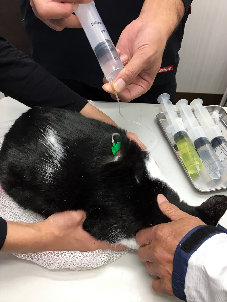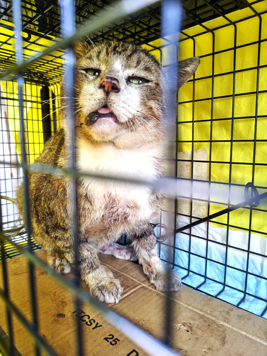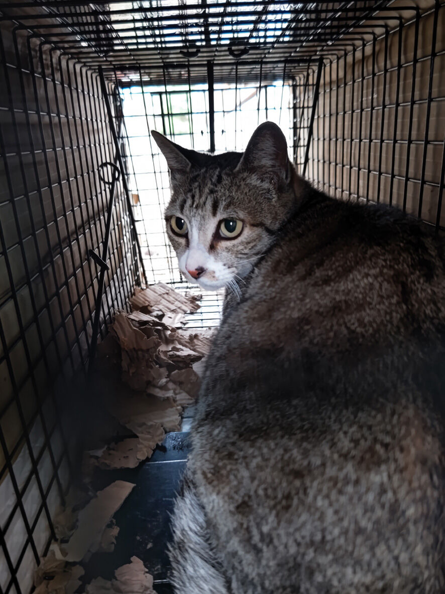 依頼レスキュー 2025年06月30日 SNSを何気なく見ていたら 怪我をしている猫を助けたい 捕獲のお手伝いをしていただけませんか#滋賀県という書き込みがあ ... 続きを読む SNSを何気なく見ていたら 怪我をしている猫を助けたい 捕獲のお手伝いをしていただけませんか#滋賀県という書き込みがありまして場所は滋賀のどこかと尋ねたらうちから45分そう遠くない場所でしたうちからももちろん出動できるけれど会長さんちの方が近いことから相談してみるとはい 行きましょう とふたつ返事で決定されたのですそうなったら会長さんの行動は早い詳しい内容を先方とDMでやり取りされて状況を把握毎晩餌やりをしている中の一匹の顔に傷があるとそのせいでご飯を上手く食べられないなのでその傷を治してやりたいでも捕獲が上手くできないということでしたもちろんそれは素晴らしいことなのでお手伝いすることに問題はないのだけれど心配なのは治療後その猫をどうするのかでした依頼者の方は学生さんでアパート住まい1匹の猫を飼っていてもうこれ以上は増やせないでも里親さんを見つけることができるかもしれない難しいかもだけどやってみたい話を伺った会長さんはその日のうちにリサーチで現場へこれなら捕まえられますよと連絡がありました会長さん撮影キジシロのどう見てもオス猫ですでも傷というよりは・・・歯が悪いか口内炎っぽいどちらにしても放っておけばこのまま悪化してご飯が食べられなくなり消えていくことになるこれは治療してやらないと翌日(昨夜になります)私も捕獲のため現場に向かいました現場に到着したら目標の猫は目の前に居ました慌てて捕獲器をセットし依頼者さんに猫を捕獲器に誘導していただくとそれほど時間もかからず捕獲成功猫は翌日うちの近くの病院で診てもらうため私が連れて帰りましたただいまー明日の朝一で診てもらうのでこのまま一晩置きます家の中の玄関は比較的涼しいので負担にはならないでしょう朝おはようお顔をちゃんと見せておくれ口臭と未去勢からなのかスゴイ悪臭だ口が痛くて毛づくろいもまともに出来ないひどい状態だということが分かりますとにかく病院だ5.3キロの身体暴れるわオシッコ漏らすわで大変でした顎が歪んでいる気もしますね と先生暴れるので良くは見えなかったけれどやはり歯も悪そう今日は爪切り 血液検査とフロントラインで終了本番は今週の金曜日麻酔をかけて去勢手術と抜歯にレントゲンちなみにエイズは陽性 白血病は陰性詳しい血液検査もしていただきその他の数値は健康そのものでした金曜日まではボクシングジムで預かって頂くことになってふー 到着会長さんすみませんお世話になりますジムのシャワールームにケージを設置日中は冷房が効いていて快適です絶対 故障してない(笑)会長さん素晴らしいですよ会長さん撮影なんかいい写真餌やりさんは「しんちゃん」と呼んでいるそうしんちゃん 金曜日まではゆっくりして去勢して歯も抜いたらスッキリするでしょうその後は里親さまも探してみよう君が幸せになるために頑張っている人がいるんだよ