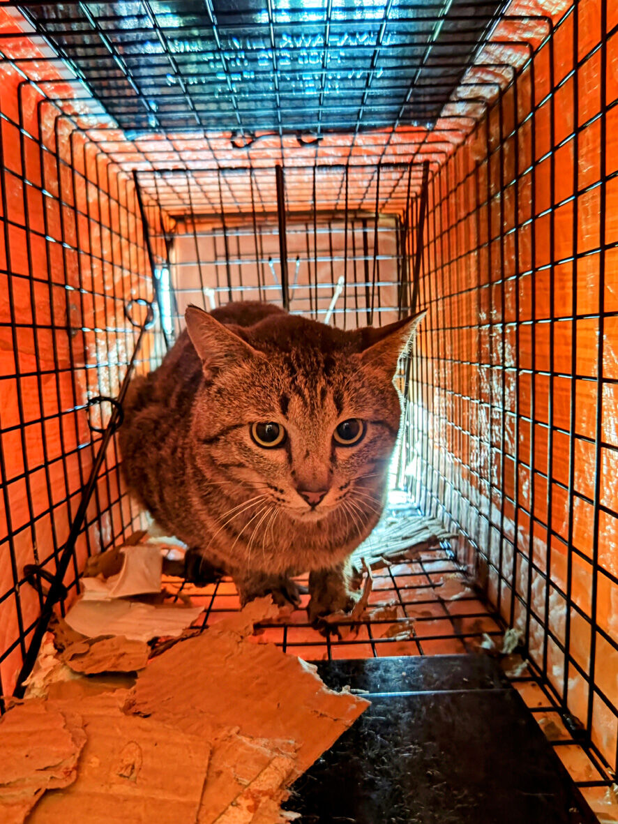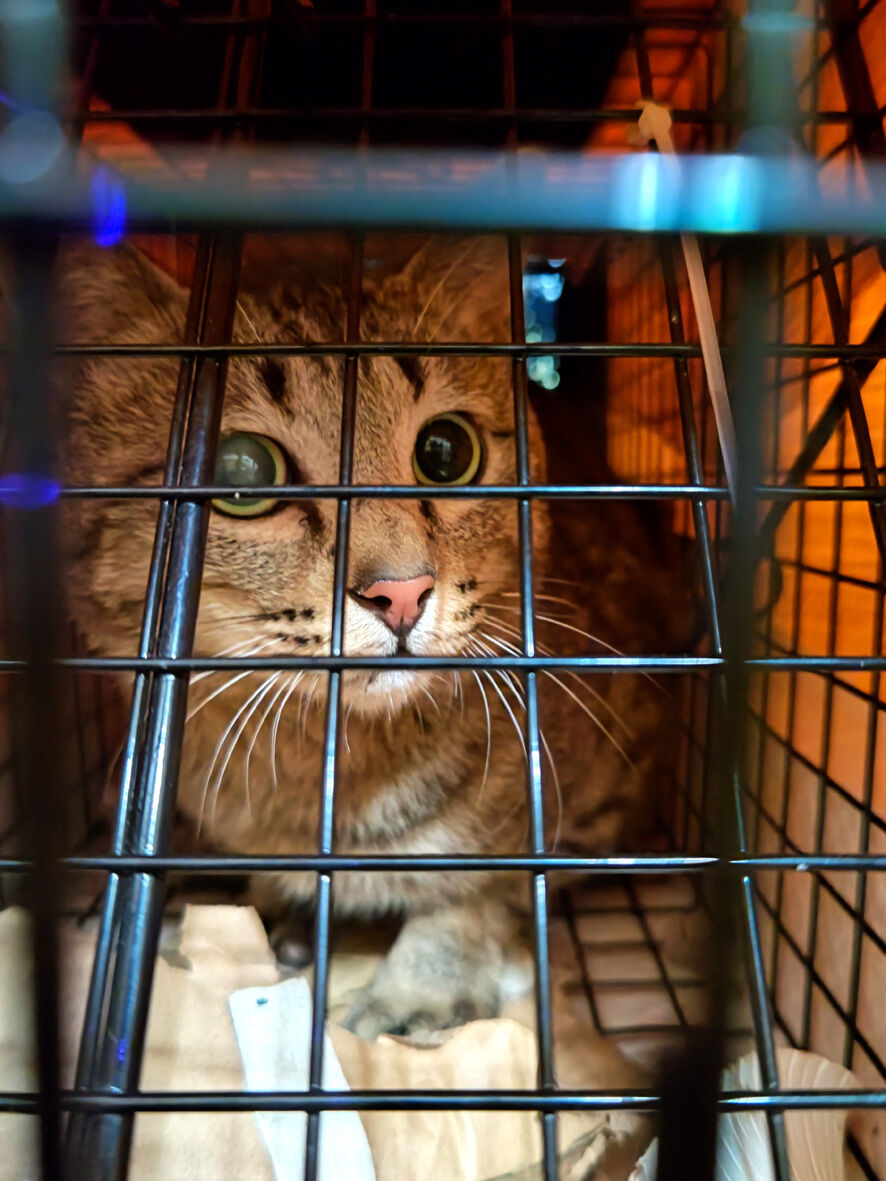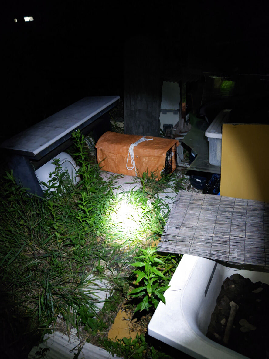 別の現場見学 2025年07月24日 今日は夕方からSNSのThreadsでHELP発信されていた現場へ行ってきました ただこちらは会長さんが頑張ってお手伝いされているの ... 続きを読む 今日は夕方からSNSのThreadsでHELP発信されていた現場へ行ってきました ただこちらは会長さんが頑張ってお手伝いされているので私は見るだけ(笑)それと やはりここもたくさんの猫たちが居るそうなのでねこから目線。さんにお願いしたのですゴロゴロ言ってましたけど気持ちがいいのでバイクで現場でねこからさんに説明する会長範囲は広めここに10匹以上の猫たちが暮らしているその中にはお腹が大きい母猫や生まれてしばらく経った子猫もいるといいます30分程見て回っているうちに日が沈み猫たちが現れ出しましたねこからさんの車の前にも挑発的です(笑)でもこいつは捕まらなかった・・・ここでもねこからさんの捕獲作業の勢いは止まりませんどんどん捕獲していって大人猫6匹この中にお腹の大きい子がいるかもしれませんそれと会長が 何とか保護してやりたいと気にかけていた子猫たち捕まりました!さらに写真はありませんがもう一匹 仔猫なんと1時間半ほどで10匹の猫を捕獲!いやーねこから目線。は やっぱり凄かったすっかり暗くなり本日はこれにて終了大人猫はTNRのため病院へリターンは明後日の土曜日仔猫は里親を見つけるため預かりさんちへ行くことになっています取りこぼした猫はねこからさんが来週月曜日に再チャレンジまた見学させてもらいます!