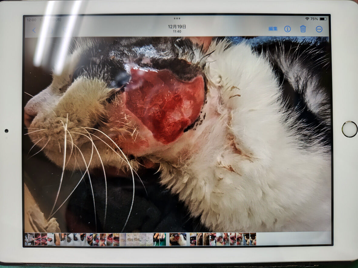 骨折猫たいちゃん報告 退院 2025年01月16日 うちの たまおの入院の日 入れ替わるようにたいちゃんが退院しましたたいちゃんは口の中が悪くてご飯をまともに食べられません ... 続きを読む うちの たまおの入院の日 入れ替わるようにたいちゃんが退院しましたたいちゃんは口の中が悪くてご飯をまともに食べられませんでしたので抜歯して貰っていたのですやはり犬歯以外の歯はボロボロ残っていた奥歯はすべて抜いて貰いましたこれでスッキリしたと思ったのですが・・・歯ももちろん悪かったのですがこれを見てください舌の側面がえらいことになっていましたこれを口内炎というのでしょうね本当に痛そうです潰れたようになっていた右耳なぜそうなったのかは結局分からずとりあえずもう治っているのでこれはこのままで大丈夫たいちゃん 帰ろうな口の中は うちでゆっくり治していこう耳がすでに治っていたり右前脚の骨折も繋がってしまっていたりたいちゃんは長い間本当に長い時間をかけて自分ひとりの力で治してきたのでしょうしかし口の中は治るどころか悪くなるばかりだった・・・会長に出会わなければ外の猫として短い生涯を終えていたはずそれを思うとやっぱり猫も人もそれぞれに運命ってあるのだなと思いますたいちゃんはここまで時間がかかったけれどこれからは過去の辛かったことを忘れるくらい過保護気味(笑)の会長さんに甘やかされて幸せな暮らしをするに違いありませんたいちゃんこれからの猫生をとことん楽しんでね!