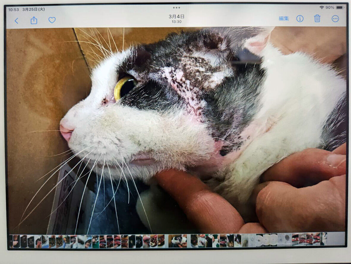 ノリちゃん お前もか! 2025年08月26日 保護した子猫たちが真菌になっていて一匹ずつ見て頂いていますが 今回の仔猫たちとはほとんど接点のないノリちゃんをよく見 ... 続きを読む 保護した子猫たちが真菌になっていて一匹ずつ見て頂いていますが 今回の仔猫たちとはほとんど接点のないノリちゃんをよく見たらギャー!顎の下が禿げてる!ということで病院へ行ってきましたあー それっぽいですねー一応ブラックライトを当ててみましたが反応は無しでもそれっぽいと先生ノリちゃんと子猫たちは普段いる場所が全く違うので直接にうつることはあり得ません可能性があるとしたら仔猫を触った私からか?とにかくお薬を貰って様子を見るしかなさそうそれほど痒がってもいないので違うかもですが・・・ついでにいろいろ診て頂きましたその他は問題ありませんかわいいのにブサイクな顔に写ってゴメン仔猫で保護したノリちゃんも もう3歳現在は立派なレディですよ