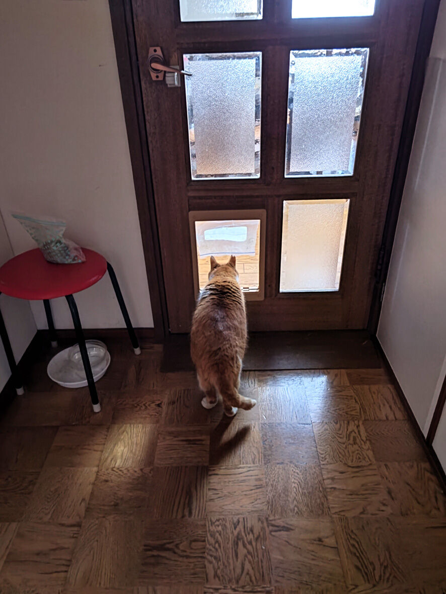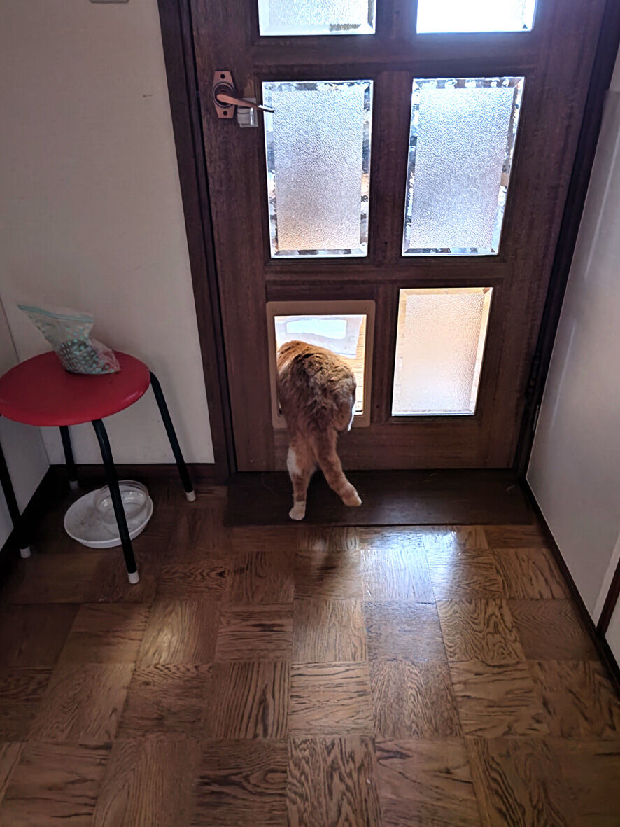 近所のねこ ペロ 8 2024年02月24日 ペロです ペロはついに! ... 続きを読む ペロです ペロはついに! リビングデビューか!?ドアの向こうはキッチン&リビング左下が猫の通り道です覗いていますおおっついに入るのか!う 後ろ脚が残ってる・・・実はこの後ペロは中に入ることなくUターン自分の巣へ帰って行きました チャンチャンペロが外でなく家の中に関心を持ってくれるのは嬉しいことですもう外とは縁を切ってもらうのですから・・・ペロは里親さま募集中otacat@ymail.ne.jpこちらまでご連絡くださいね